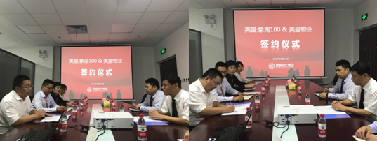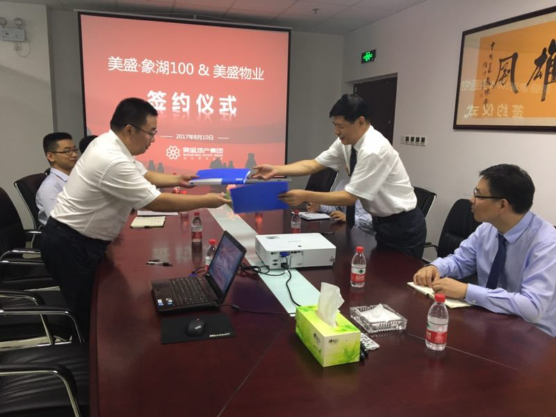 2017年8月10日下午,美盛•象湖100項目與河南美盛物業(yè)管理有限公司鄭州分公司正式簽訂戰(zhàn)略合作協(xié)議,共同推動全方位深入合作事宜。