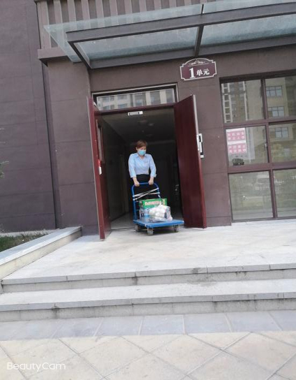 每每看到她拉著板車,低頭對(duì)照手機(jī)里業(yè)戶的生活物資清單,內(nèi)心無法克制的暖流翻涌,眼淚漸漸盈眶。她可以選擇不聞不問、裝聾作啞,也可以選擇推脫或是草草了事,但是她沒有退后,不僅給隔離戶提供所需物資,還有應(yīng)必答。