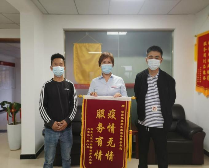 扛過鄭州最艱難的時(shí)期,一面遲來的錦旗,滿載沉甸甸的榮譽(yù)來到徐莊物業(yè)服務(wù)中心,沒有過多華麗的語言,只有兩行大字“疫情無情,服務(wù)有情”。管家李森莉這么久的默默付出,得到業(yè)戶由衷的認(rèn)可,作為一名物業(yè)人,被日常這碎了一地雞毛事務(wù)圍繞的她,這一刻一定是幸福的。業(yè)戶的理解和認(rèn)可,彌足珍貴。